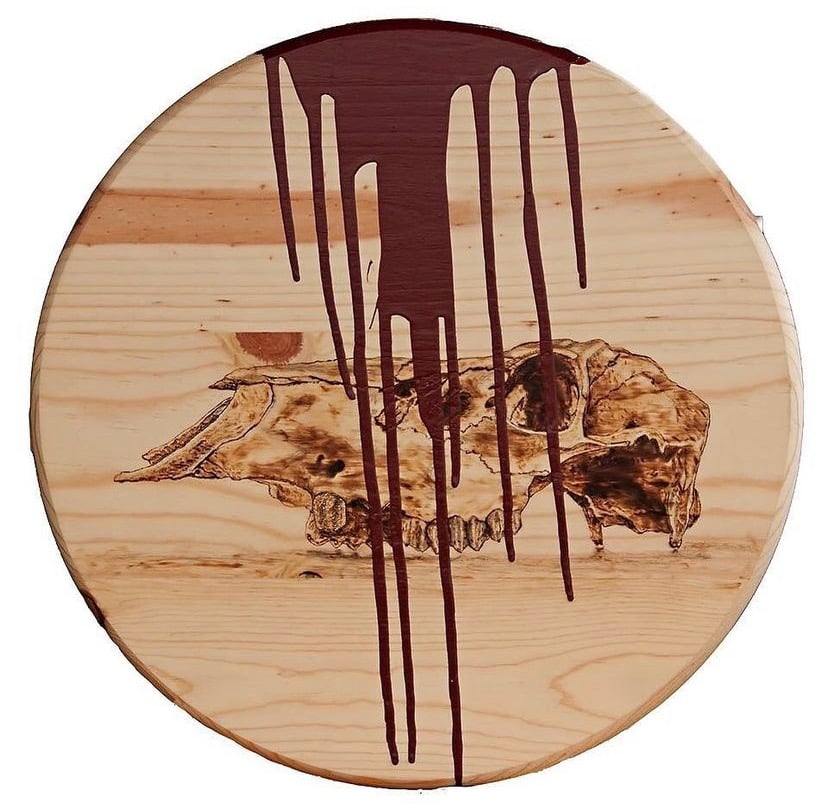 Hand-drawn and wood burned, gold leaf is what makes this tooth gold.
