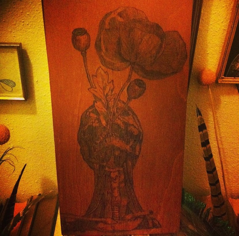 Say Uncle was originally done as pyrography on reclaimed wood panel and was created & sold in Houston TX in February 2015. I made the piece after my paternal uncle died of an overdose on December 22, 2014.